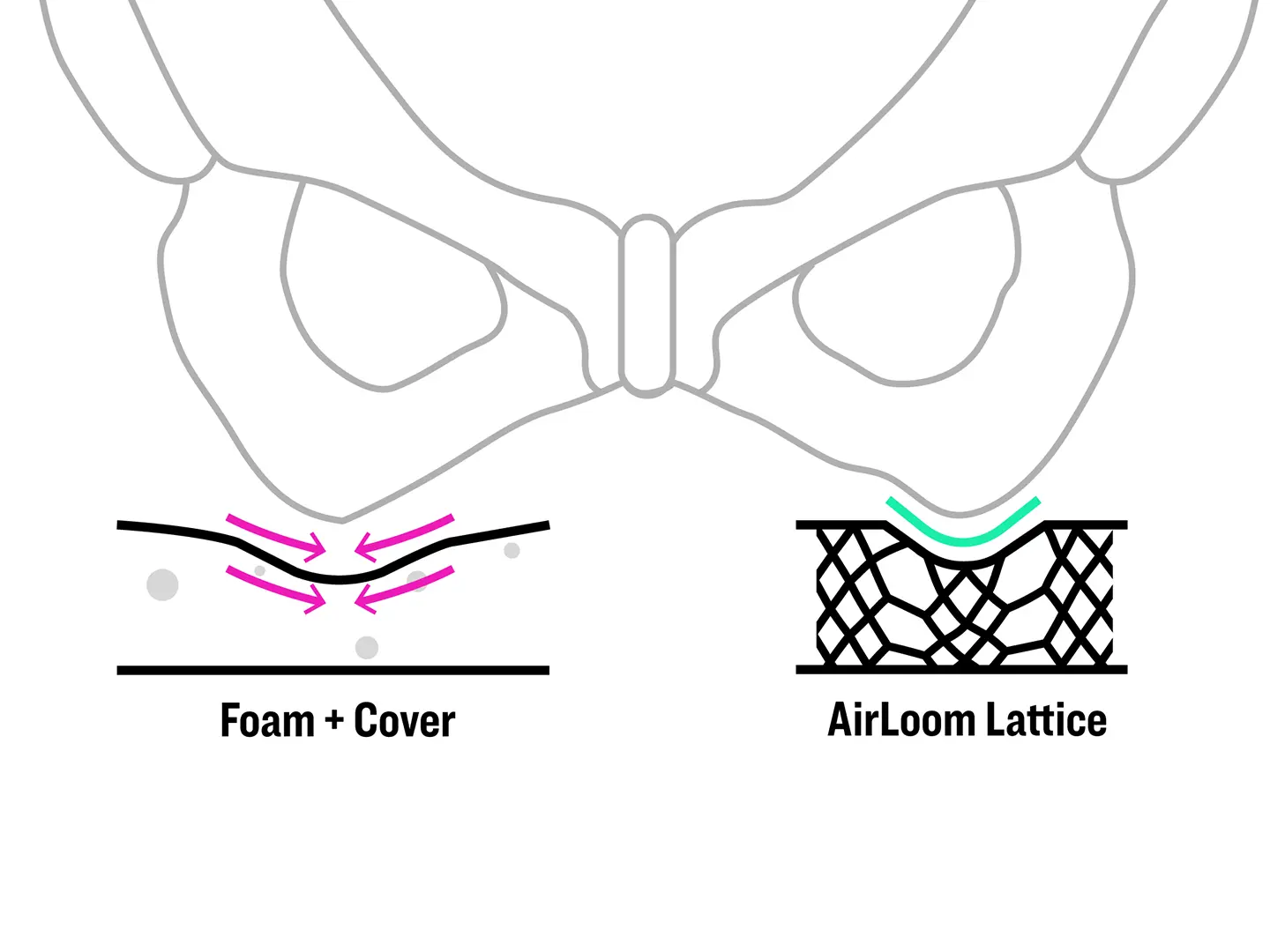 ※従来のフォームサドルでは圧力がかかる部分に対して、周囲のフォームが伸びて沈む(下図の左)