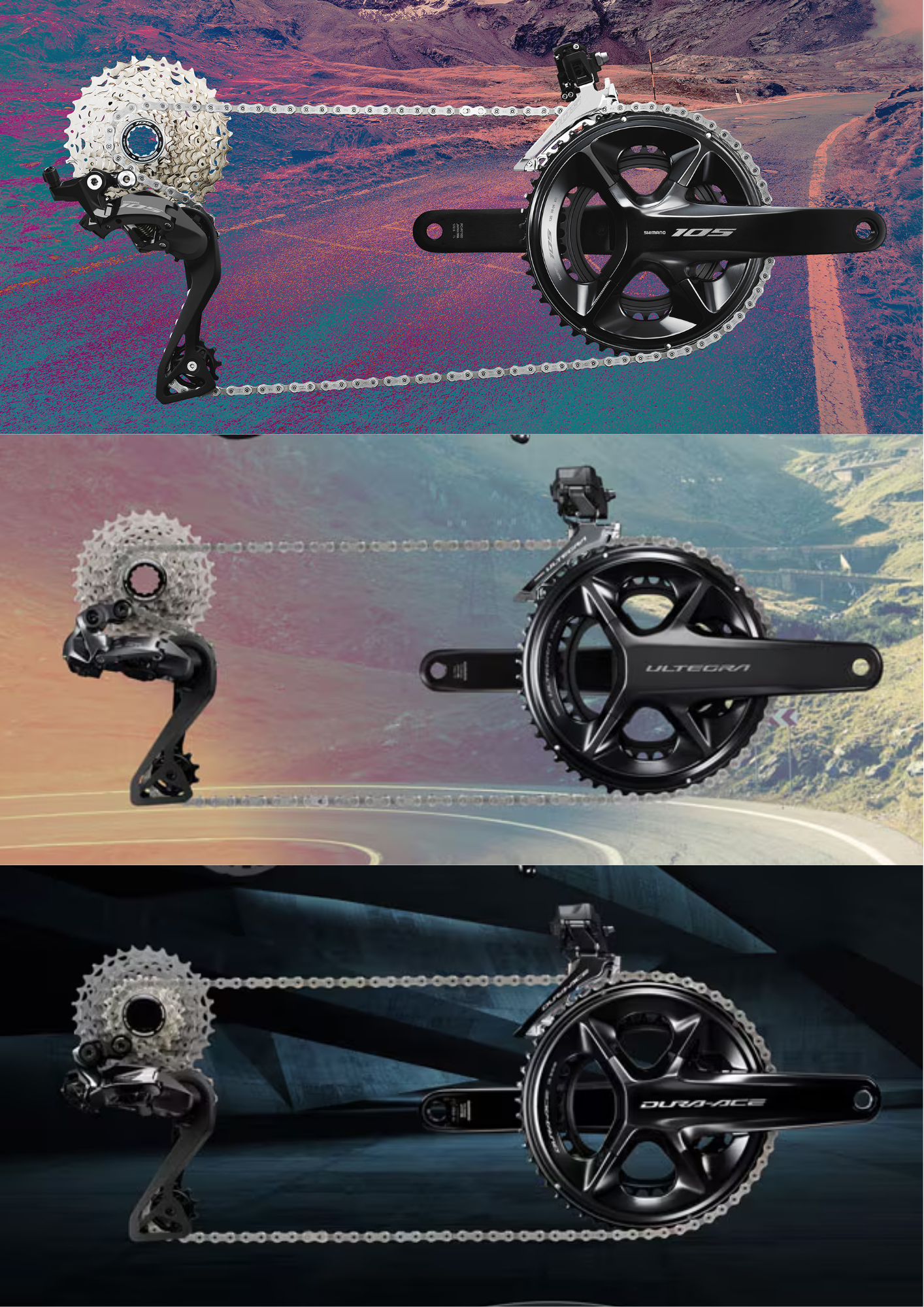 現在シマノから発売されているDi2搭載グレードは105・ULTEGRA・DURA-ACEの3種類です。